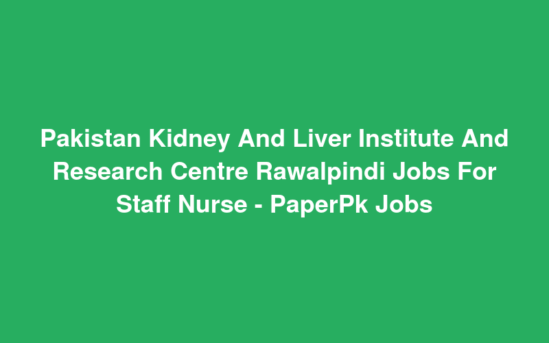 Pakistan Kidney And Liver Institute And Research Centre Rawalpindi Jobs For Staff Nurse - PaperPk Jobs