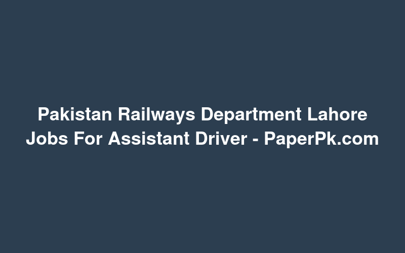 Check out this new career opening for Pakistan Railways Department Lahore Jobs For Assistant Driver - PaperPk.com in Pakistan. Review full details and apply.