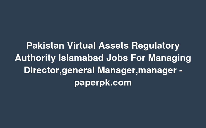 Pakistan Virtual Assets Regulatory Authority Islamabad Jobs For Managing Director,general Manager,manager - paperpk.com