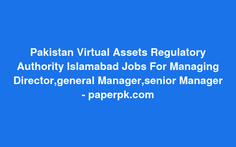 Pakistan Virtual Assets Regulatory Authority Islamabad Jobs For Managing Director,general Manager,senior Manager - paperpk.com
