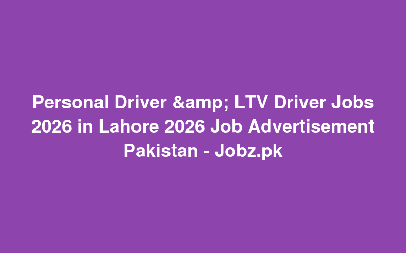 Personal Driver & LTV Driver Jobs 2026 in Lahore 2026 Job Advertisement Pakistan - Jobz.pk