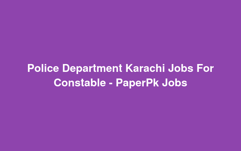 Police Department Karachi Jobs For Constable - PaperPk Jobs