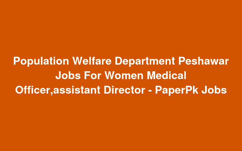 Population Welfare Department Peshawar Jobs For Women Medical Officer,assistant Director - PaperPk Jobs