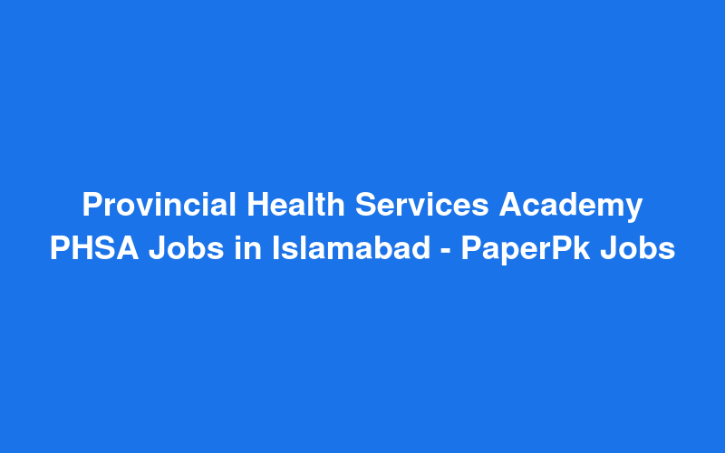 Provincial Health Services Academy PHSA Jobs in Islamabad - PaperPk Jobs