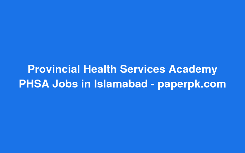 Provincial Health Services Academy PHSA Jobs in Islamabad - paperpk.com