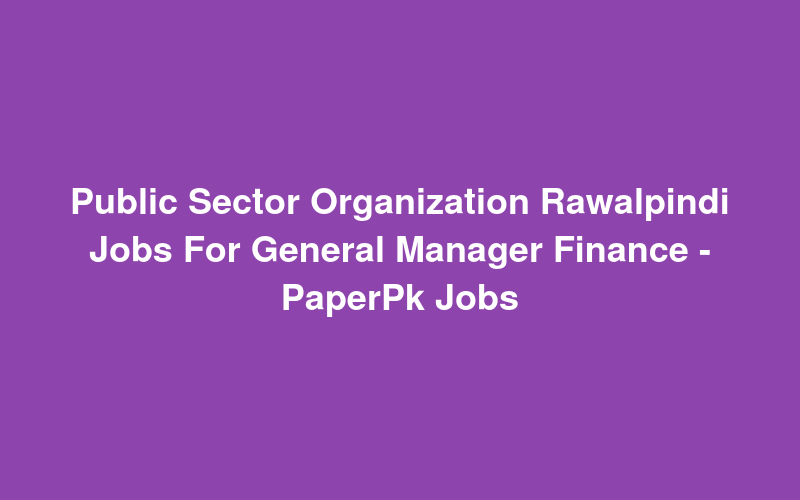 Public Sector Organization Rawalpindi Jobs For General Manager Finance - PaperPk Jobs