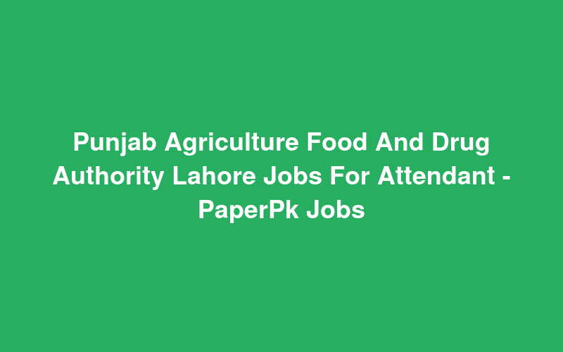 Punjab Agriculture Food And Drug Authority Lahore Jobs For Attendant - PaperPk Jobs