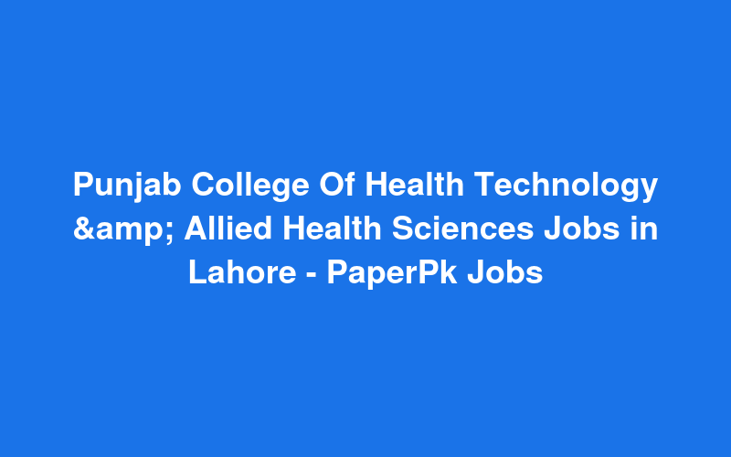 Punjab College Of Health Technology & Allied Health Sciences Jobs in Lahore - PaperPk Jobs