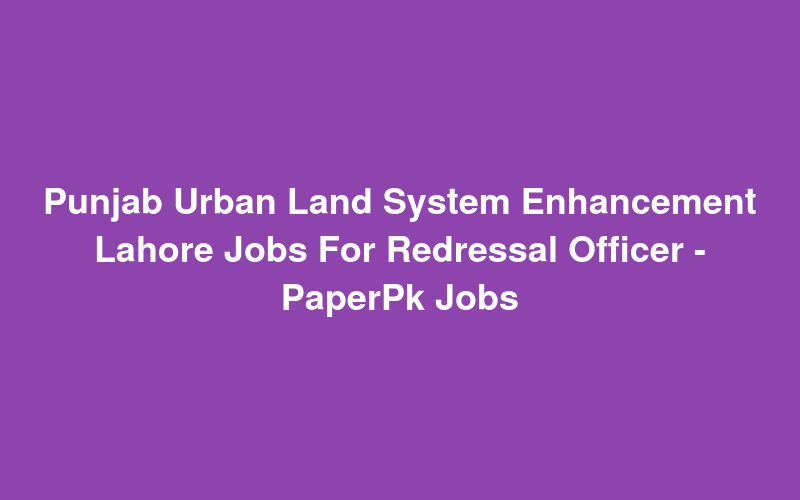 Punjab Urban Land System Enhancement Lahore Jobs For Redressal Officer - PaperPk Jobs