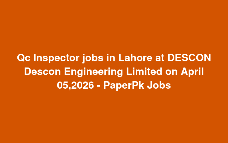 Check out this new career opening for Qc Inspector jobs in Lahore at DESCON Descon Engineering Limited on April 05,2026 - PaperPk Jobs in Pakistan. Review full details and apply.
