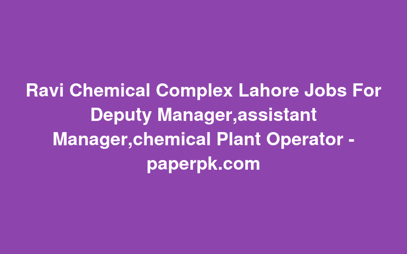Ravi Chemical Complex Lahore Jobs For Deputy Manager,assistant Manager,chemical Plant Operator - paperpk.com