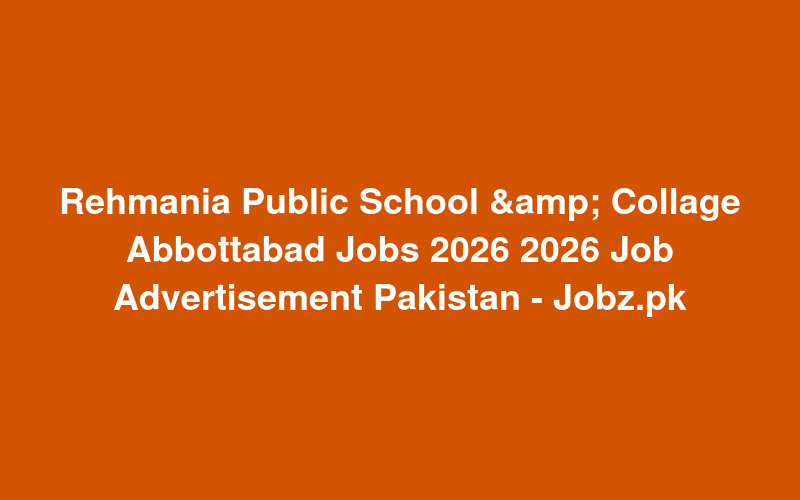Check out this new career opening for Rehmania Public School & Collage Abbottabad Jobs 2026 2026 Job Advertisement Pakistan - Jobz.pk in Pakistan. Review full details and apply.