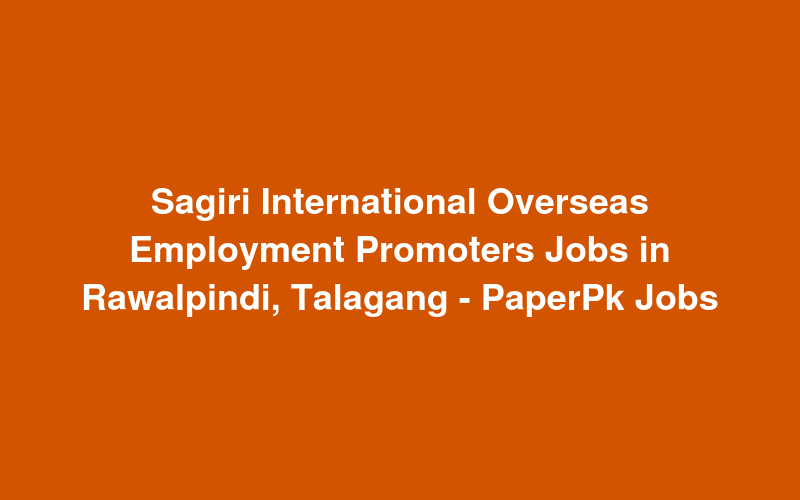 Check out this new career opening for Sagiri International Overseas Employment Promoters Jobs in Rawalpindi, Talagang - PaperPk Jobs in Pakistan. Review full details and apply.