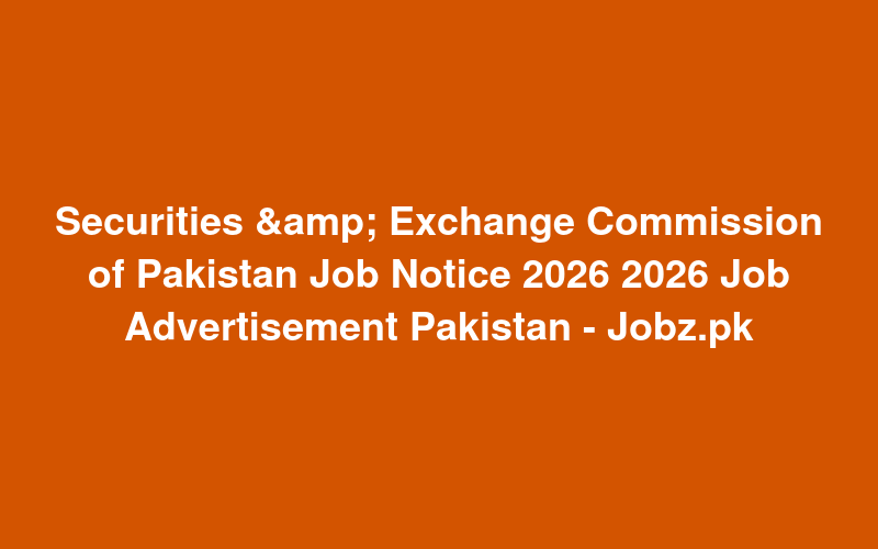 Check out this new career opening for Securities & Exchange Commission of Pakistan Job Notice 2026 2026 Job Advertisement Pakistan - Jobz.pk in Pakistan. Review full details and apply.