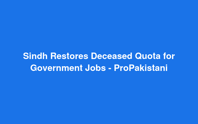 Sindh Restores Deceased Quota for Government Jobs - ProPakistani