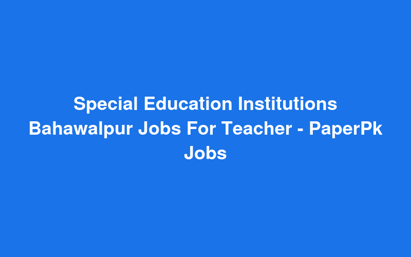 Check out this new career opening for Special Education Institutions Bahawalpur Jobs For Teacher - PaperPk Jobs in Pakistan. Review full details and apply.