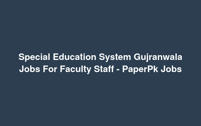 Check out this new career opening for Special Education System Gujranwala Jobs For Faculty Staff - PaperPk Jobs in Pakistan. Review full details and apply.