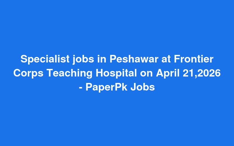Check out this new career opening for Specialist jobs in Peshawar at Frontier Corps Teaching Hospital on April 21,2026 - PaperPk Jobs in Pakistan. Review full details and apply.