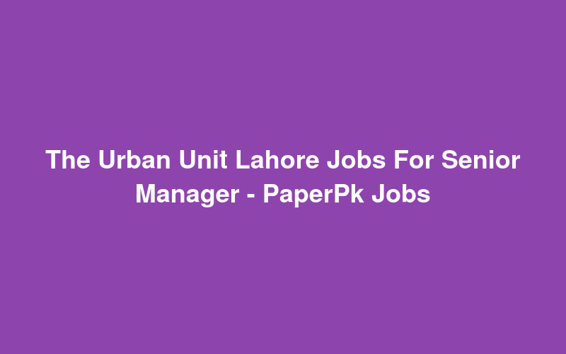 Check out this new career opening for The Urban Unit Lahore Jobs For Senior Manager - PaperPk Jobs in Pakistan. Review full details and apply.