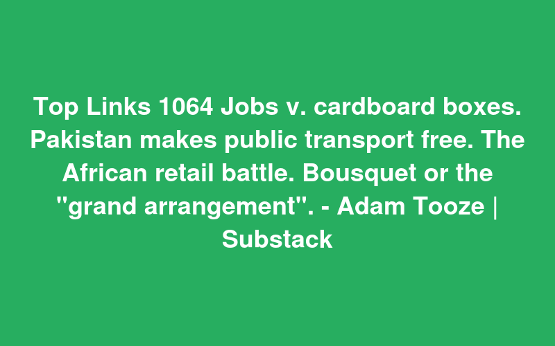 Top Links 1064 Jobs v. cardboard boxes. Pakistan makes public transport free. The African retail battle. Bousquet or the "grand arrangement". - Adam Tooze | Substack