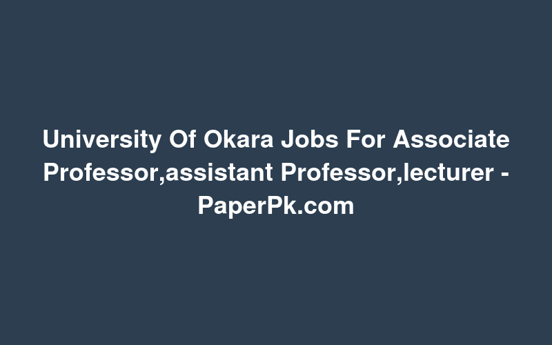 University Of Okara Jobs For Associate Professor,assistant Professor,lecturer - PaperPk.com