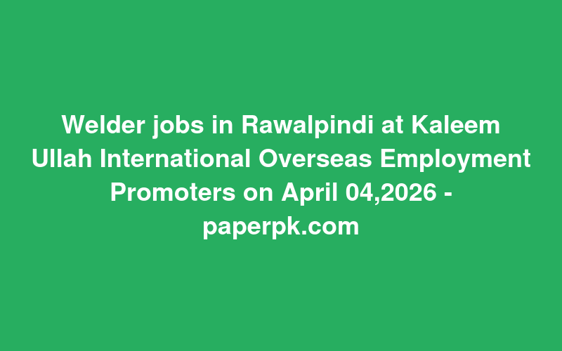 Check out this new career opening for Welder jobs in Rawalpindi at Kaleem Ullah International Overseas Employment Promoters on April 04,2026 - paperpk.com in Pakistan. Review full details and apply.