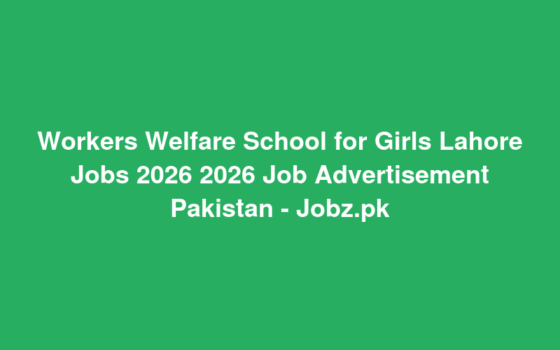 Workers Welfare School for Girls Lahore Jobs 2026 2026 Job Advertisement Pakistan - Jobz.pk